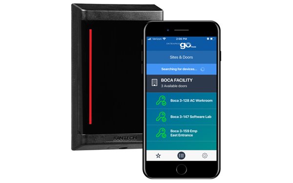 Kantech ioSmart readers can be installed as a traditional multi-technology reader on most panel-based access control systems, allowing customers to complement or transition from physical cards and key tags to mobile-based credentials.